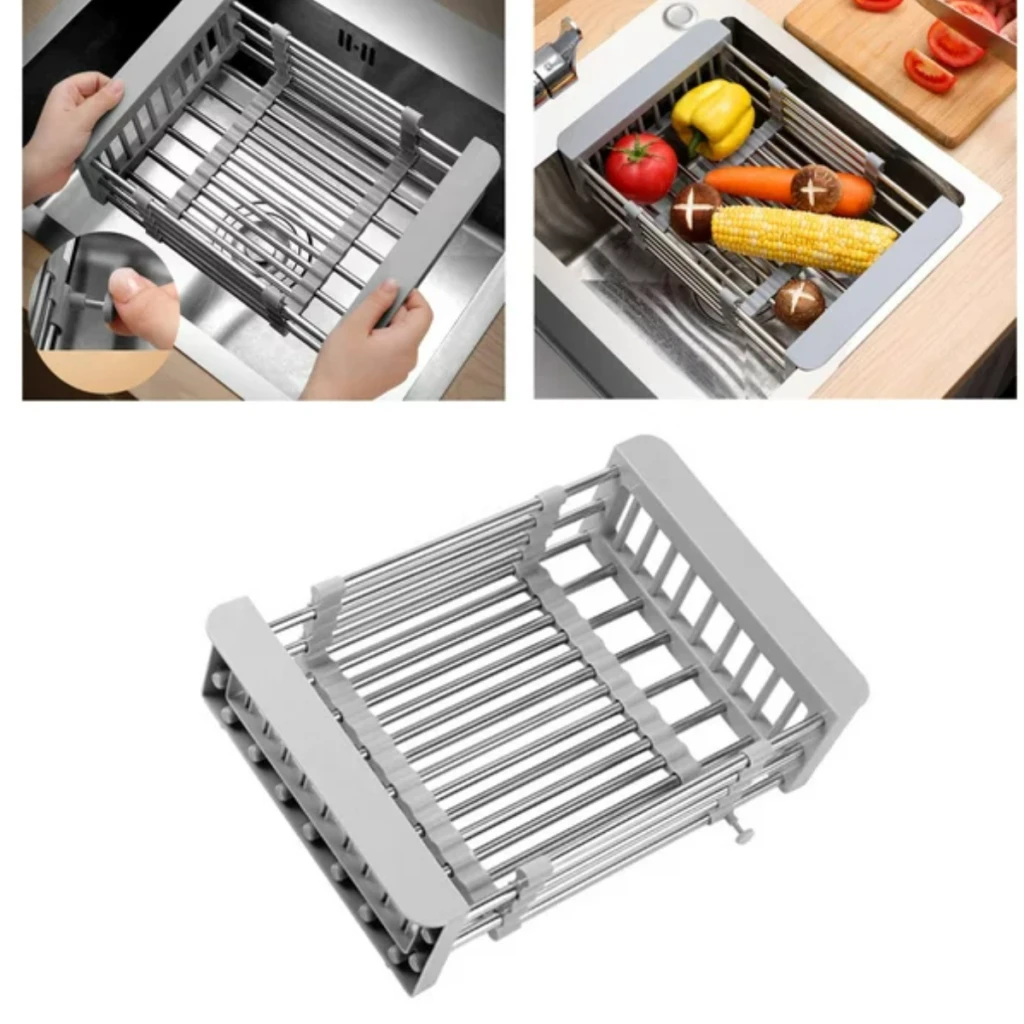 Este escurridor extensible es la solución perfecta para optimizar el espacio en tu cocina. Diseñado para colocarse sobre la bacha, se adapta a distintos tamaños gracias a su estructura ajustable. Ideal para escurrir frutas, verduras, utensilios o vajilla, manteniendo la mesada seca y ordenada.