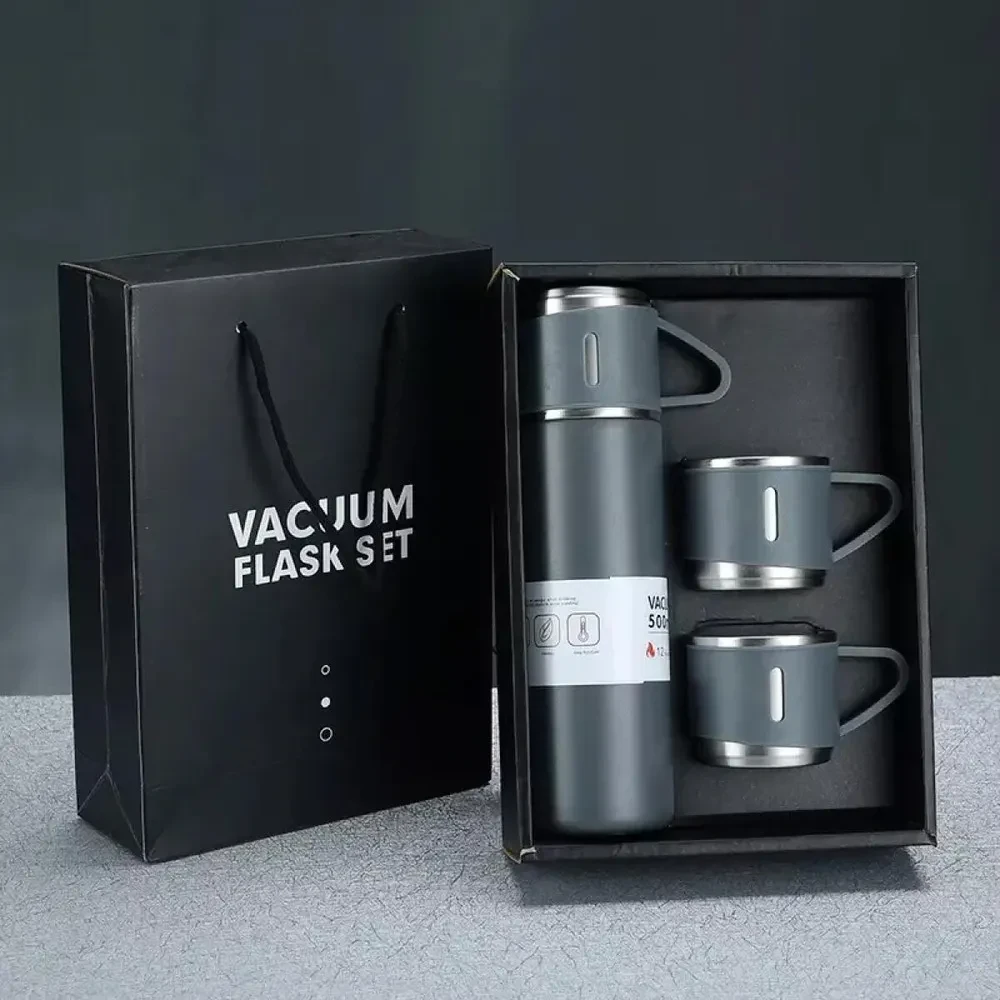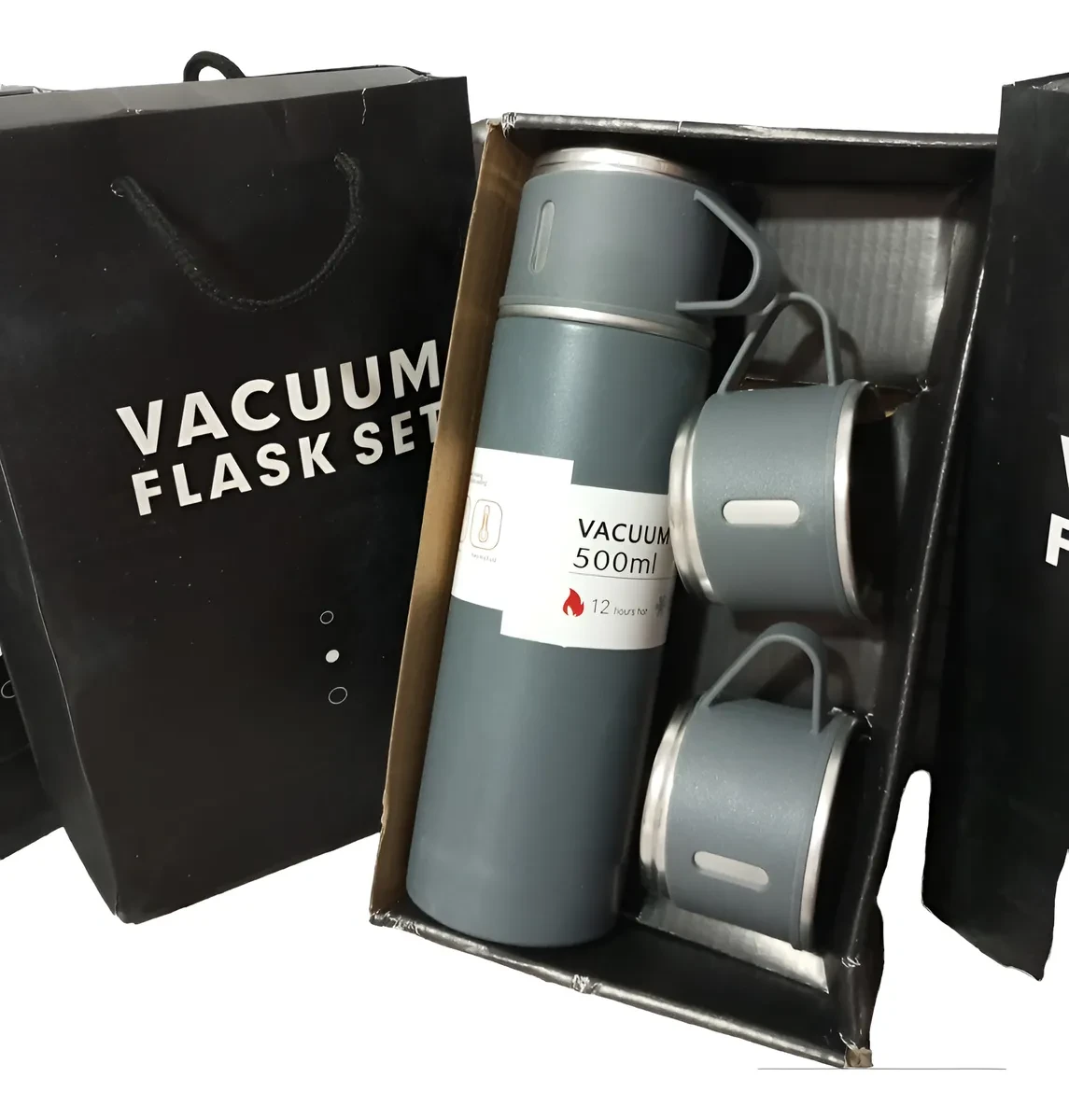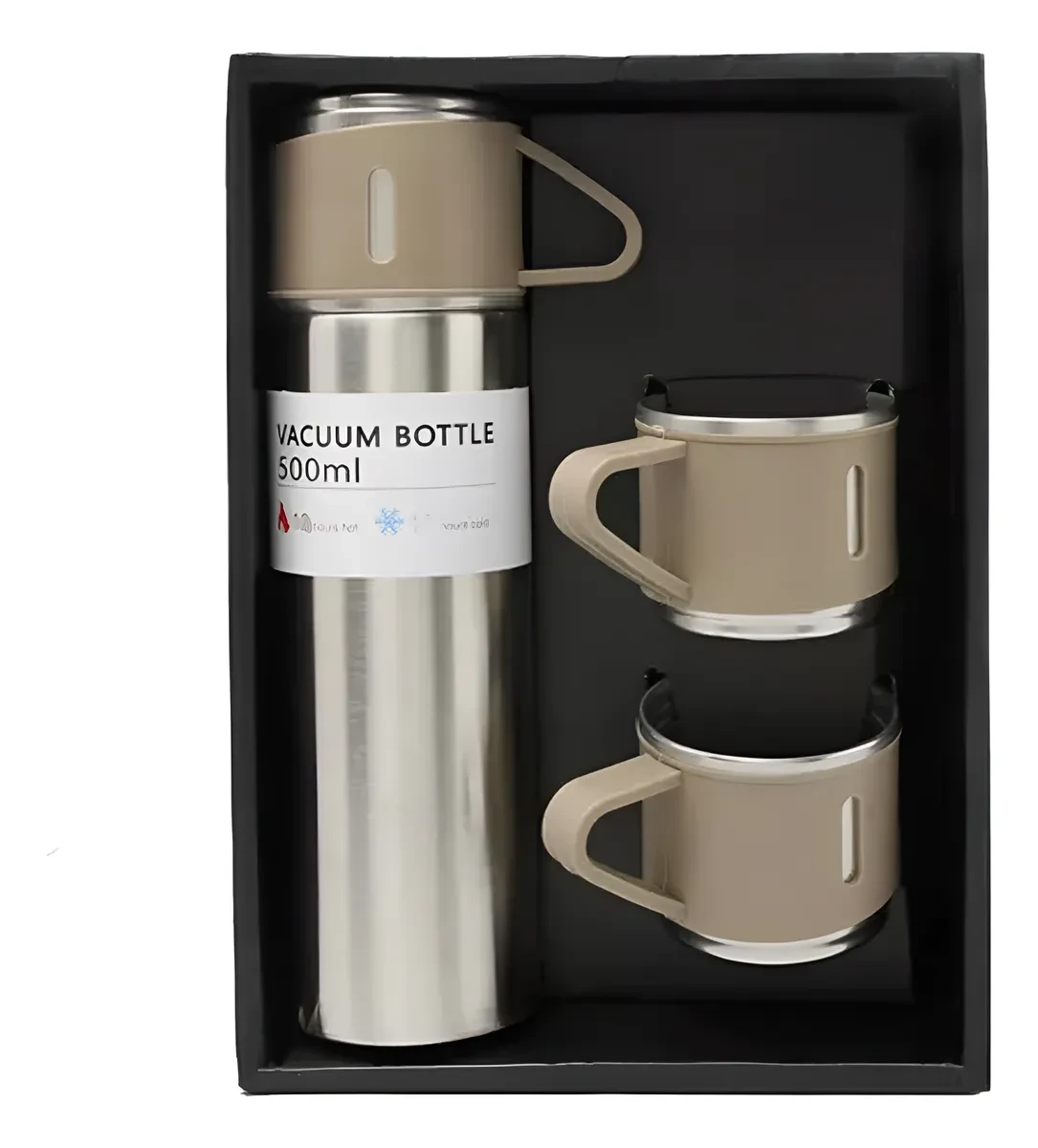 Descubrí la elegancia y funcionalidad del Termo Vacuum Bottle Set de 500 ml, diseñado para quienes valoran la calidad en cada momento. Fabricado en acero inoxidable, tanto en su interior como en su exterior, este termo mantiene la temperatura de tus bebidas frías o calientes.