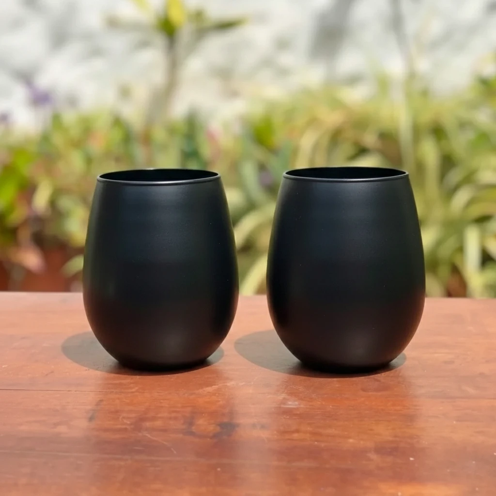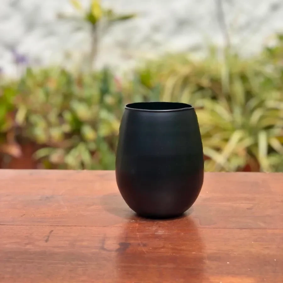 Este vaso copón de vidrio negro es una pieza de diseño minimalista y sofisticado, ideal para quienes buscan sumar estilo a sus momentos cotidianos. Su formato redondeado y acabado mate lo convierten en una opción versátil para servir bebidas frías, cócteles, jugos o incluso como elemento decorativo.